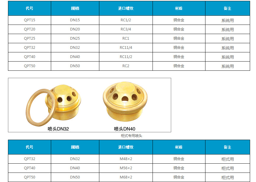 QPT15,QPT20,QPT25,QPT32,QPT40,QPT50,網管噴頭