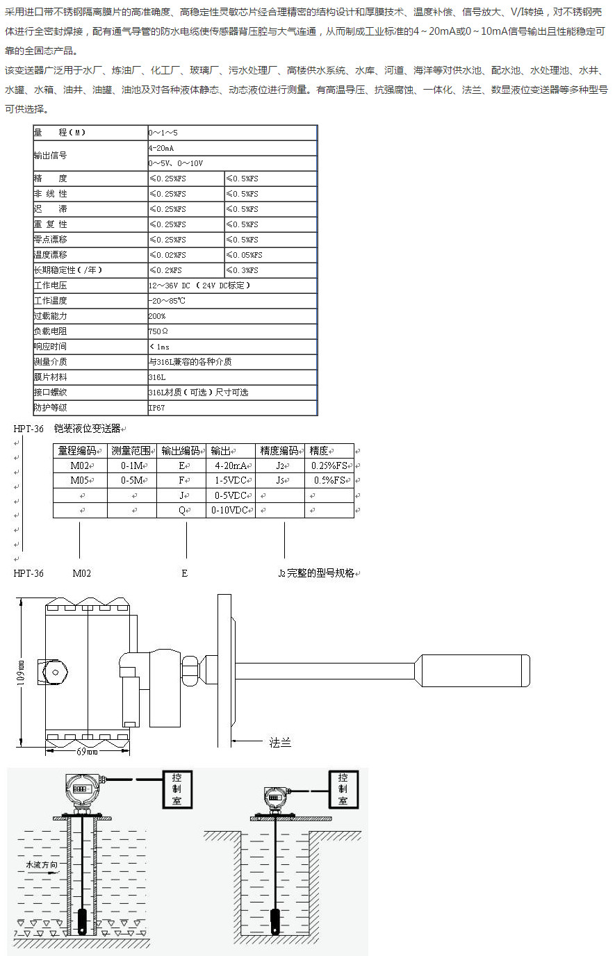 HPT-36-M02-E-J2,HPT-36-M05-E-J2,HPT-36-M02-F-J2,HPT-36-M05-F-J2,鎧裝液位變送器