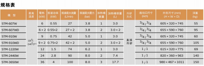 STM-607W,STM-607WD,STM-910W,STM-910WD,STM-1220W,STM-2440W,STM-3650W,水式模具控溫機