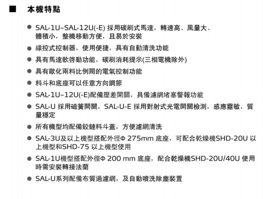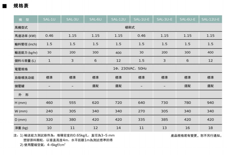 SAL-1U,SAL-3U,SAL-6U,SAL-12U,SAL-1U-E,SAL-3U-E,SAL-6U-E,SAL-12U-E,歐化直結式真空填料機