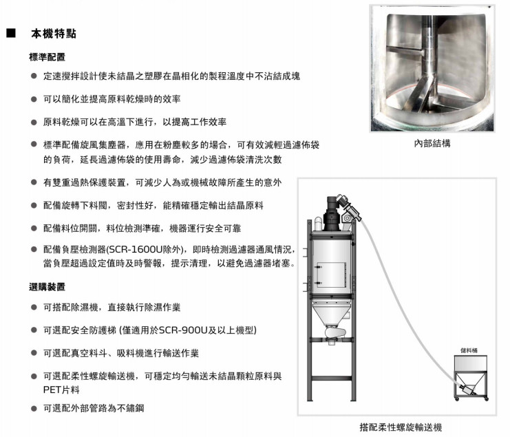 SCR-160U,SCR-450U,SCR-900U,SCR-1600U,SCR-2500U,PET結(jié)晶機(jī)