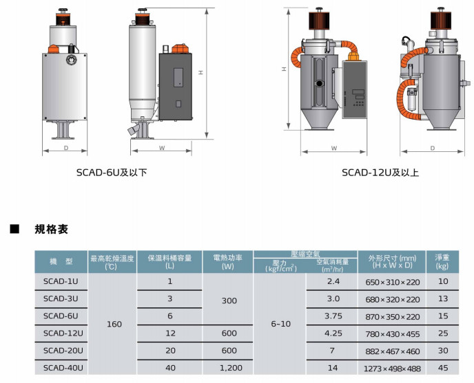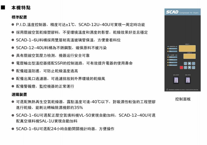 SCAD-1U,SCAD-3U,SCAD-6U,SCAD-12U,SCAD-20U,SCAD-40U,空壓式干燥機