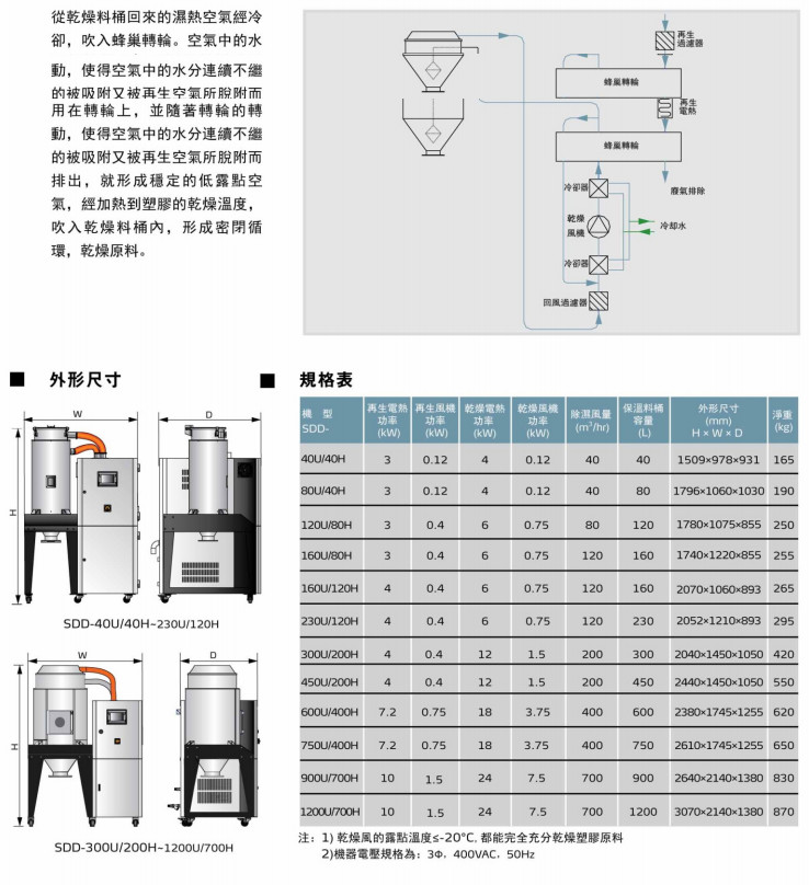 SDD-40U/40H,SDD-80U/40H,SDD-120U/80H,SDD-160U/80H,SDD-160U/120H,歐化除濕干燥機送料組合