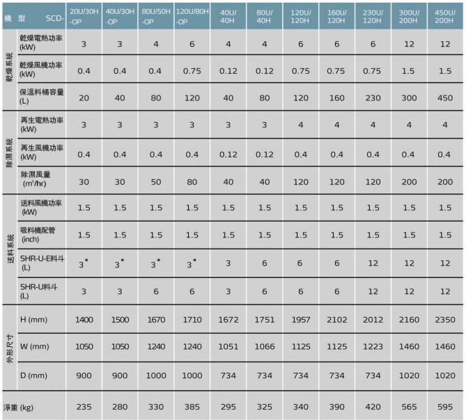 SCD-20U/30H-OP,SCD-40U/30H-OP,SCD-80U/50H-OP,SCD-120U/80H-OP,SCD-40U/40H,SCD-120U/120H,SCD-160U/120H,SCD-230U/120H,SCD-300U/200H,SCD-450U/200H, SCD-600U/400H,SCD-750U/400H,SCD-900U/700H,SCD-1200U/700H,SCD-90U*2/100H,歐化除濕干燥機(jī)送料組合
