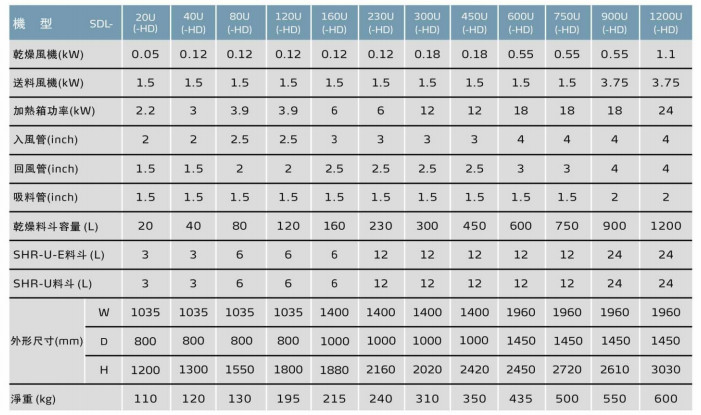 SDL-20U,SDL-40U,SDL-80U,SDL-120U,SDL-160U,SDL-230U,SDL-300U,SDL-450U,SDL-600U,SDL-750U,SDL-900U,SDL-1200U歐化熱風(fēng)干燥送料組合