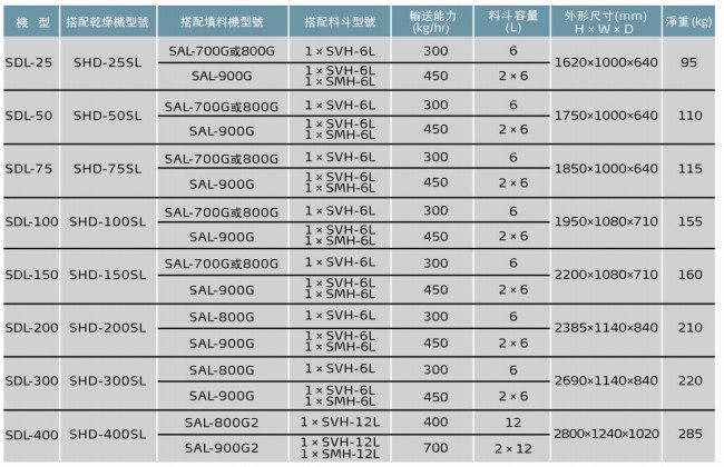 SDL-25,SDL50,SDL-75,SDL-100,SDL-150,SDL-200,SDL-300,SDL-400,熱風干燥送料組合