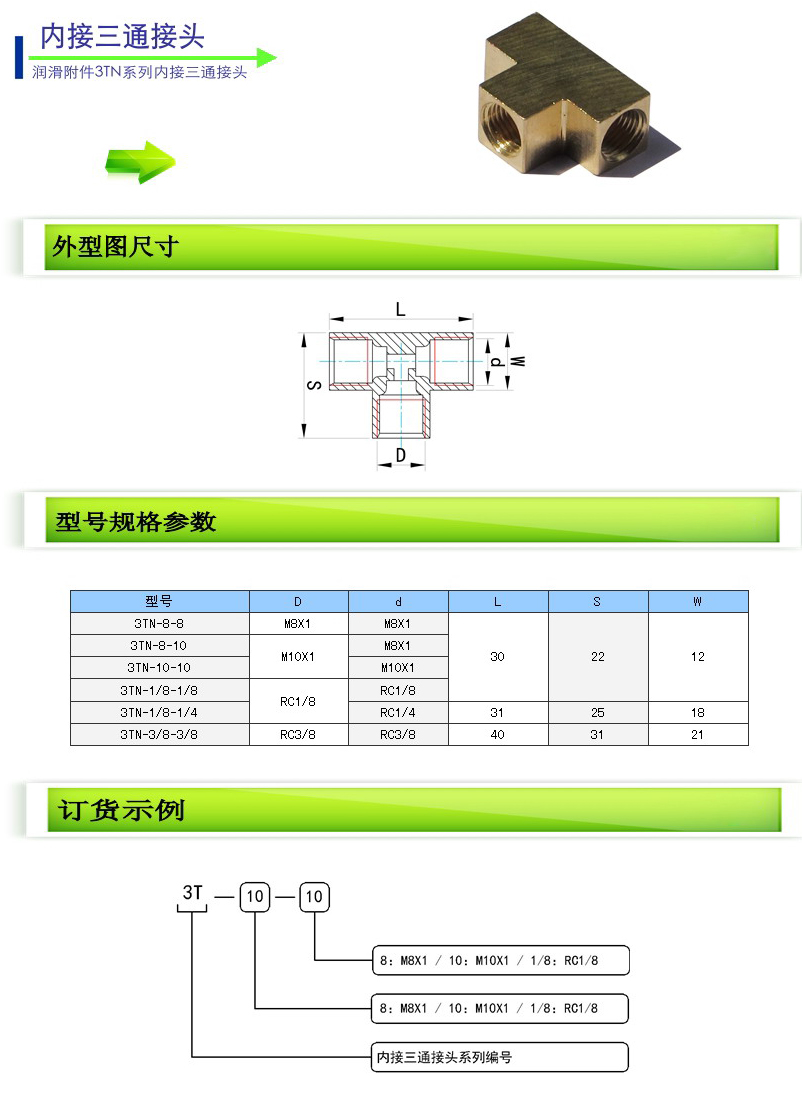 3TN-8-8,3TN-8-10,3TN-10-10,3TN-1/8-1/8,3TN-1/8-1/4,3TN-3/8-3/8,內(nèi)接三通接頭