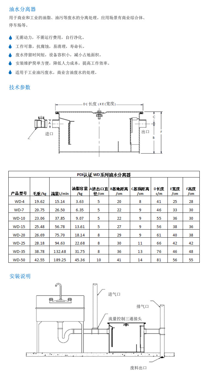 WD-4,WD-7,WD-10,WD-15,WD-20,WD-25,WD-35,WD-50,油水分離器