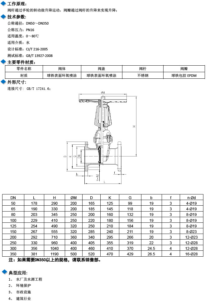 W-ZF41X-16Q-DN50,W-ZF41X-16Q-DN65,W-ZF41X-16Q-DN80,明桿手輪型彈性座封閘閥