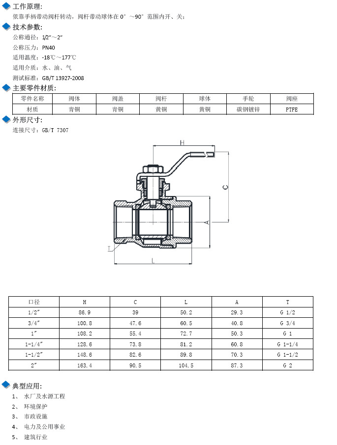 W-FBV-G-1/2",W-FBV-G-3/4",W-FBV-G-1",W-FBV-G-1-1/4",L型手柄青銅球閥