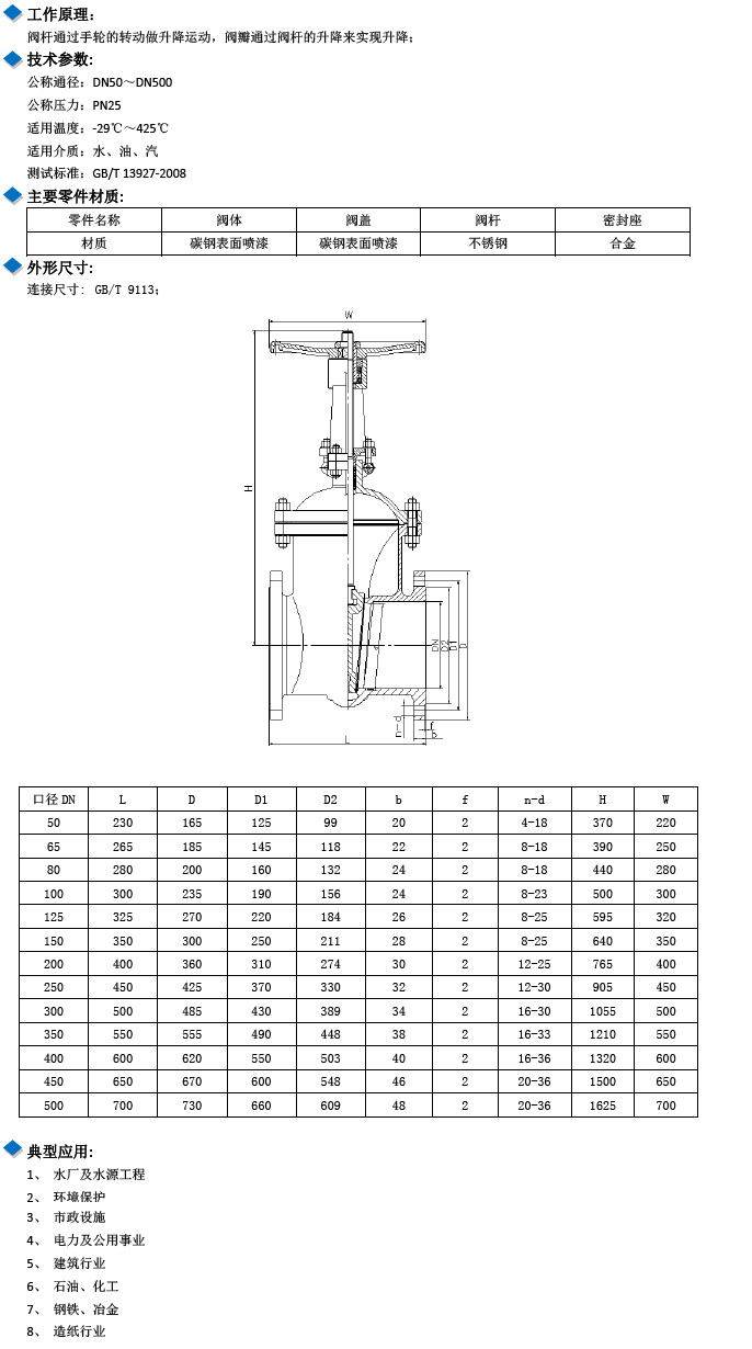 型號: W-Z41H-25C-DN50,W-Z41H-25C-DN65,W-Z41H-25C-DN80,W-Z41H-25C-DN100,W-Z41H-25C-DN125,W-Z41H-25C-DN150 W