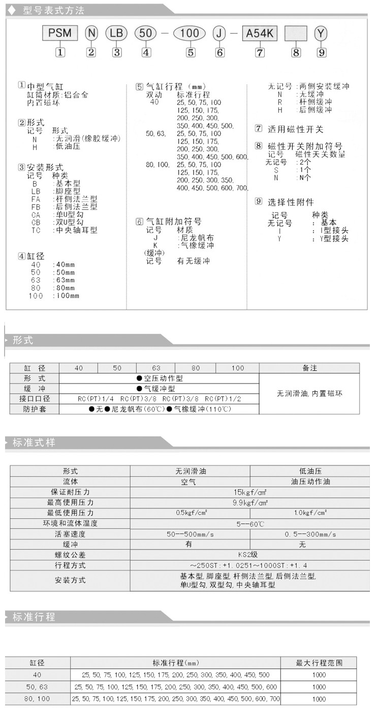 PSMNB40,PSMNB50,PSMNB63,PSMNB80,PSMNB100,PSMNLB40,PSMNCA40,中型氣缸PSM系列