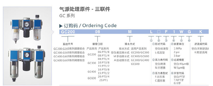 GC200-06,GC200-08,GC300-10,GC300-15,GC300-10A,GC300-15A,GC400-10M,氣源處理件--三聯(lián)件