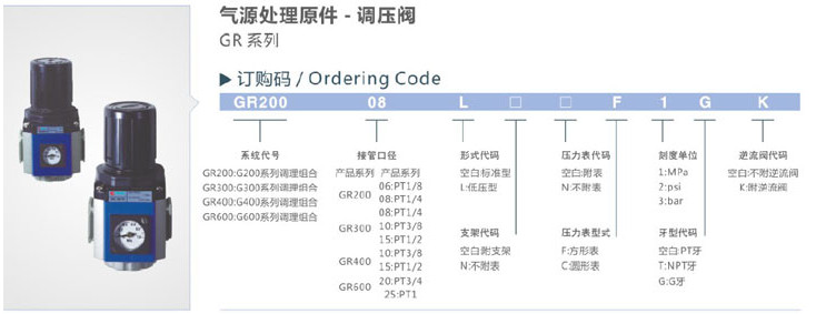 GR200-06,GR200-08,GR300-08,GR300-10,GR300-15,GR400-10,GR400-15,GR600-20,GR600-25,氣源處理原件--調(diào)壓閥
