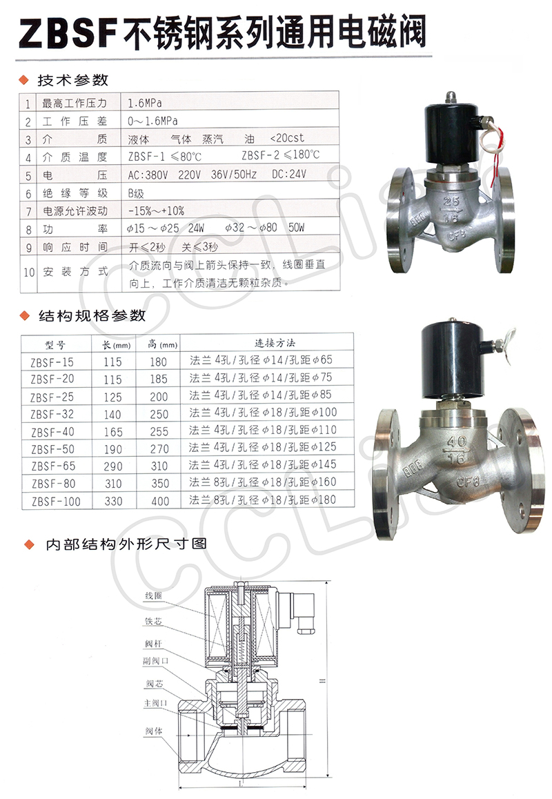 ZBSF-15,ZBSF-20,ZBSF-25,ZBSF-32,ZBSF-40,ZBSF-50,ZBSF-55,ZBSF-80,ZBSF-100,ZBSF不銹鋼通用電磁閥
