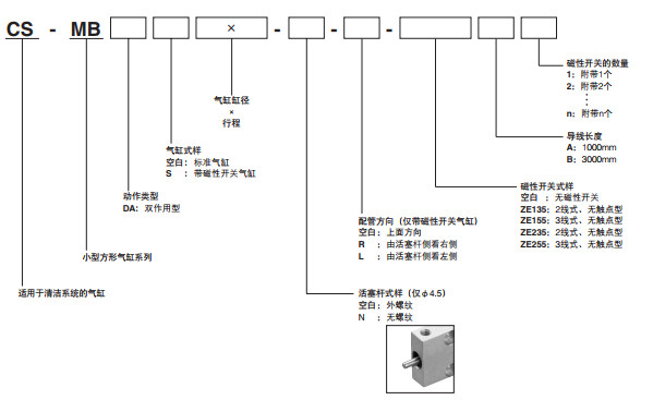 CS-MBDA4.5*4,CS-MBDA4.5*6,CS-MBDA4.5*8,CS-MBDA4.5*10,CS-MBDA6*4,小型方形氣缸--適用于清潔系統(tǒng)的氣缸