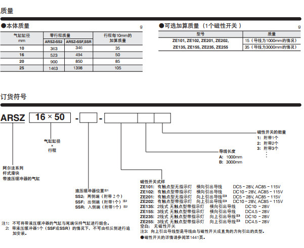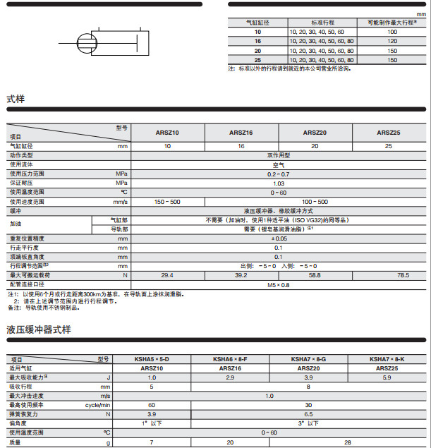 ARSZ10*10,ARSZ10*20,ARSZ10*30,ARSZ10*40,ARSZ10*50,ARSZ10*60,桿式滑塊--帶液壓緩沖器的氣缸