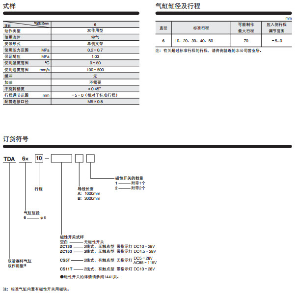 TDA6*10,TDA6*20,TDA6*30,TDA6*40,TDA6*50,雙活塞桿氣缸