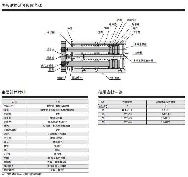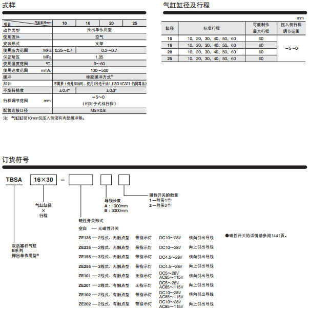 TBSA10*10,TBSA10*20,TBSA10*30,TBSA10*40,TBSA10*50,TBSA10*60,雙活塞桿氣缸B系列--押出單作用型