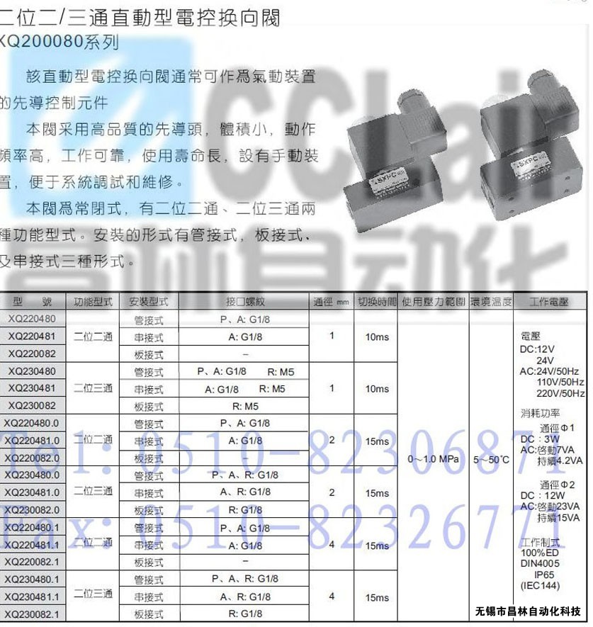 XQ220480,XQ220481,XQ220082,XQ230480,XQ230481,XQ230082,XQ220480.0,二位二通/三通直動型電控換向閥 |