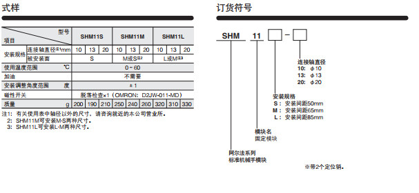 SHM11S-10,SHM11S-13,SHM11S-20,SHM11M-10,SHM11M-13,SHM11M-20,標準機械手模塊--固定模塊