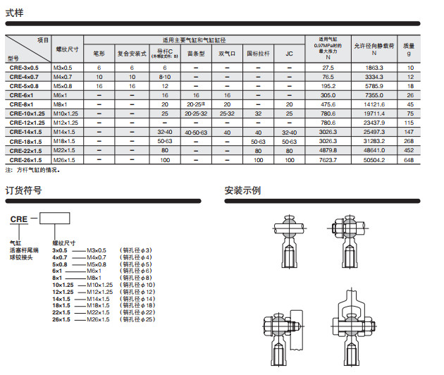 CRE-3*0.5,CRE-4*0.7,CRE-5*0.8,CRE-6*1,CRE-8*1,CRE-10*1.25,氣缸活塞桿尾端球鉸接頭