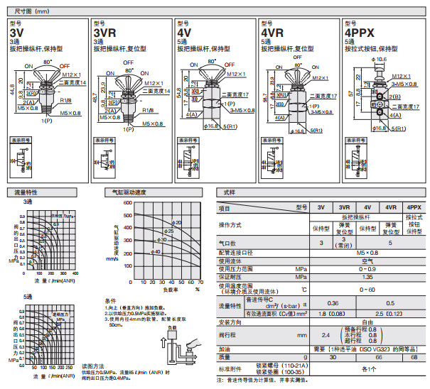 3V,3VR,4V,4VR,4PPX,TAC手動閥--操縱桿式閥