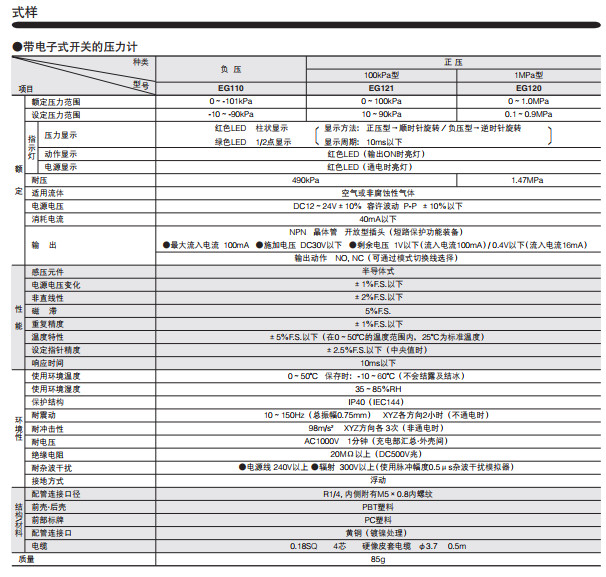 EG110,EG120,EG121,內(nèi)置電子開關式壓力計