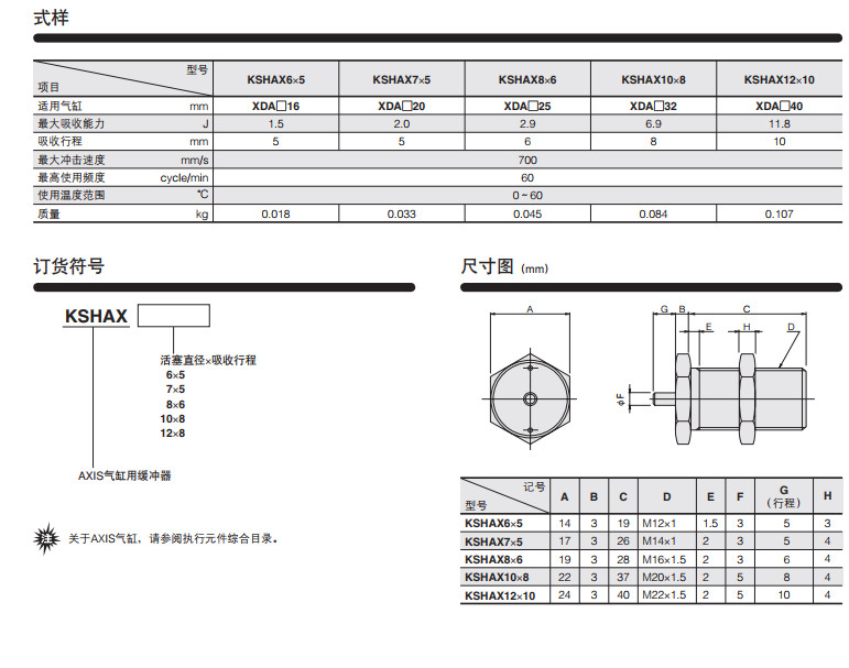 KSHAX6*5,KSHAX7*5,KSHAX8*6,KSHAX10*8,KSHAX12*10,專用緩沖器