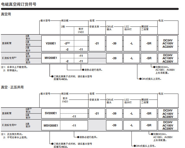 V200E1-2-11,V200E1-2-11-SR,V200E1-2-11-21,V200E1-2-11-21-SR,真空電磁閥V200系列