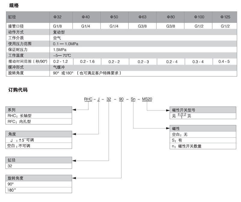 RFCJ32-90,RFCJ32-180,RFCJ40-90,RFCJ40-180,RFCJ50-90,旋轉(zhuǎn)氣缸