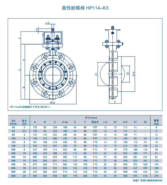 HP114-K3 DN50,HP114-K3 DN65,HP114-K3 DN80,HP114-K3 DN100,HP114-K3 DN125,高性能蝶閥