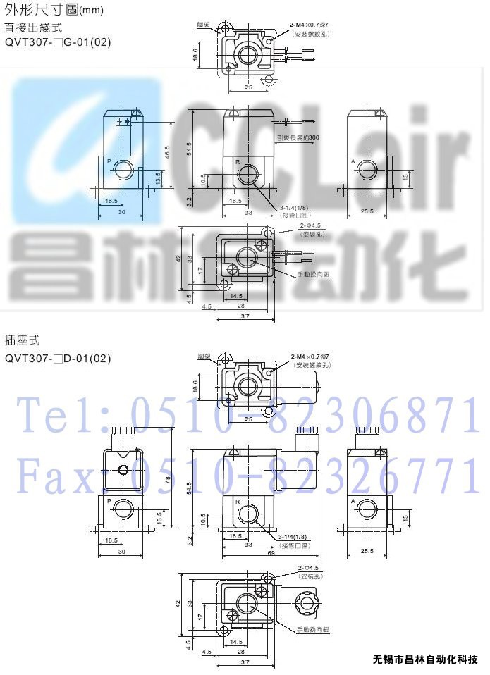 QVO307-5G-00,QVO307-5D-00,QVO307-6G-01(02),QVO307-6D-00,二位三通直動型電控換向閥