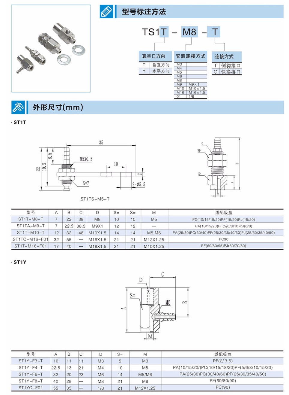 型號: ST1T-M8-T,ST1TA-M9-T,ST1T-M10-T,ST1TC-M16-F01,ST1T-M16-F01,ST1Y-F3-T,ST1Y-F4-T,ST1Y-F6-T,ST1Y-F8-T,S