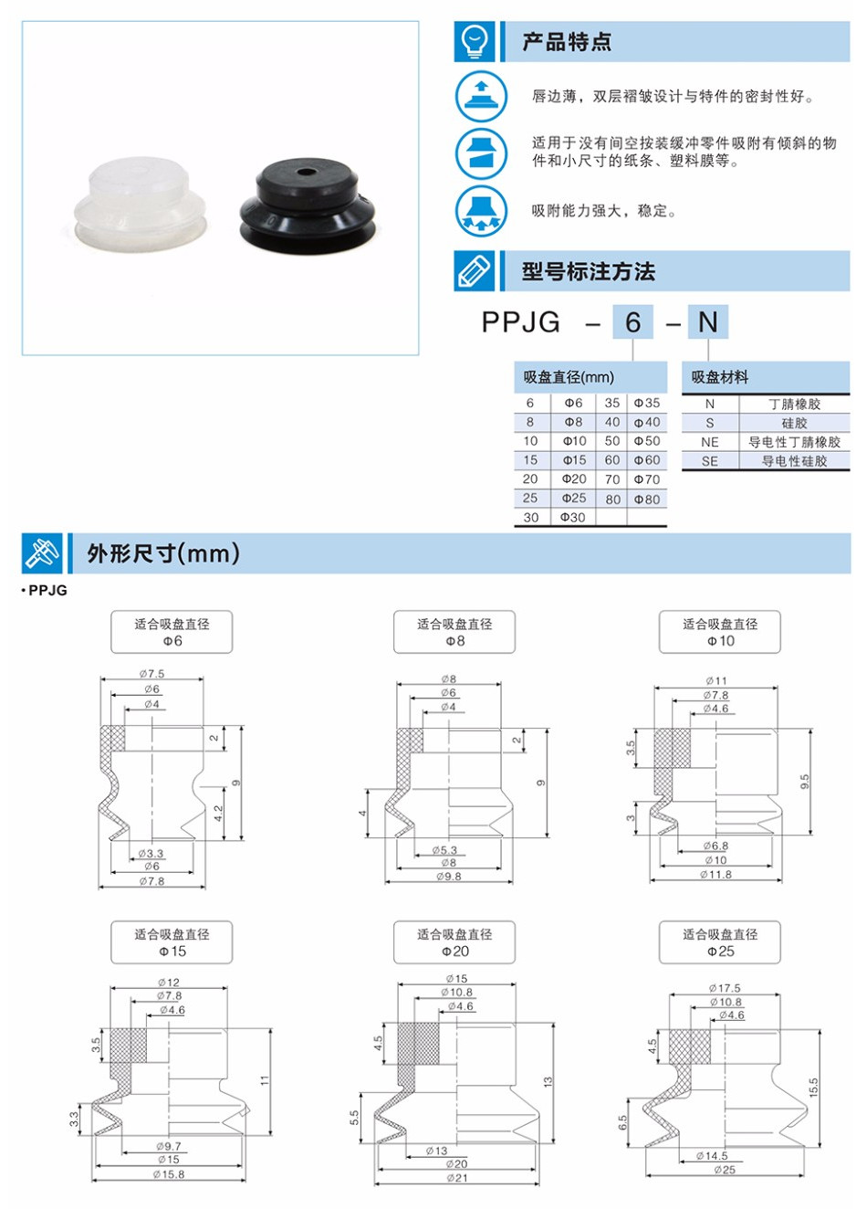 PPJG-6-N,PPJG-6-S,PPJG-6-NE,PPJG-6-SE,PPJG-8-N,PPJG-8-S,PPJG系列薄型雙層吸盤