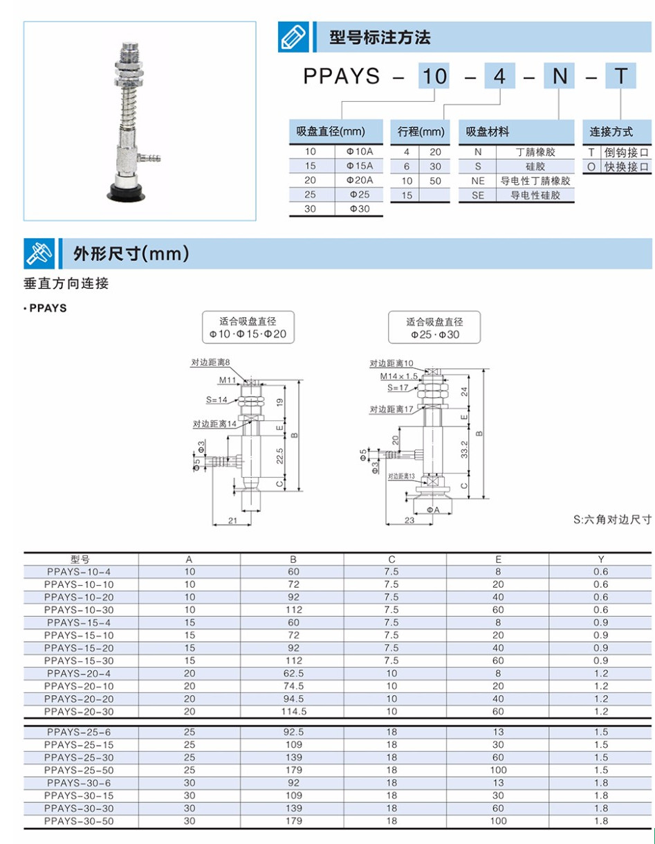 PPAYS-10-4,PPAYS-10-10,PPAYS-10-20,PPAYS-10-30,PPAYS系列薄型水平真空口帶緩沖吸盤組