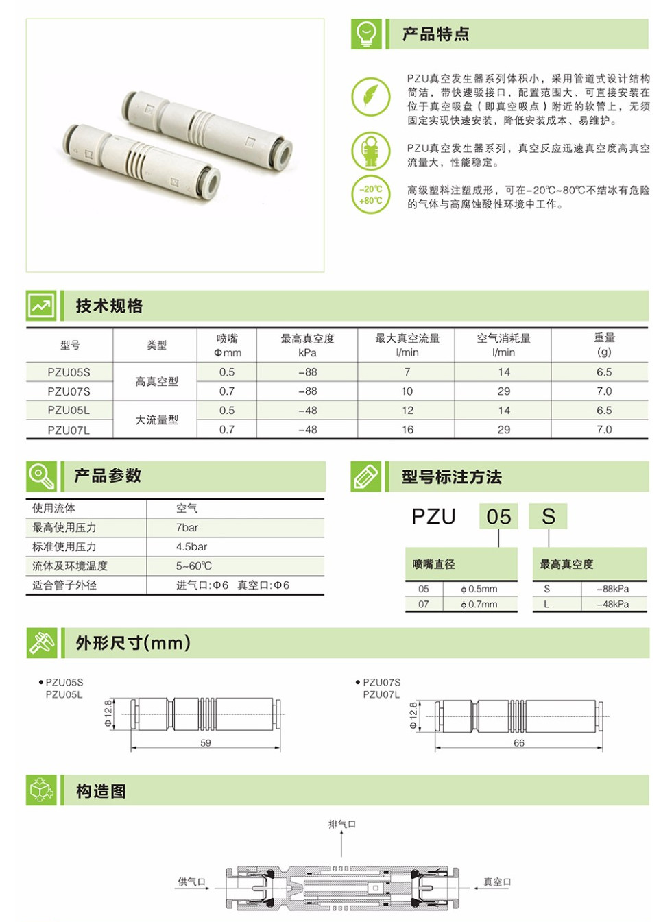 PZU05S,PZU07S,PZU05L,PZU07L,PZU真空發(fā)生器