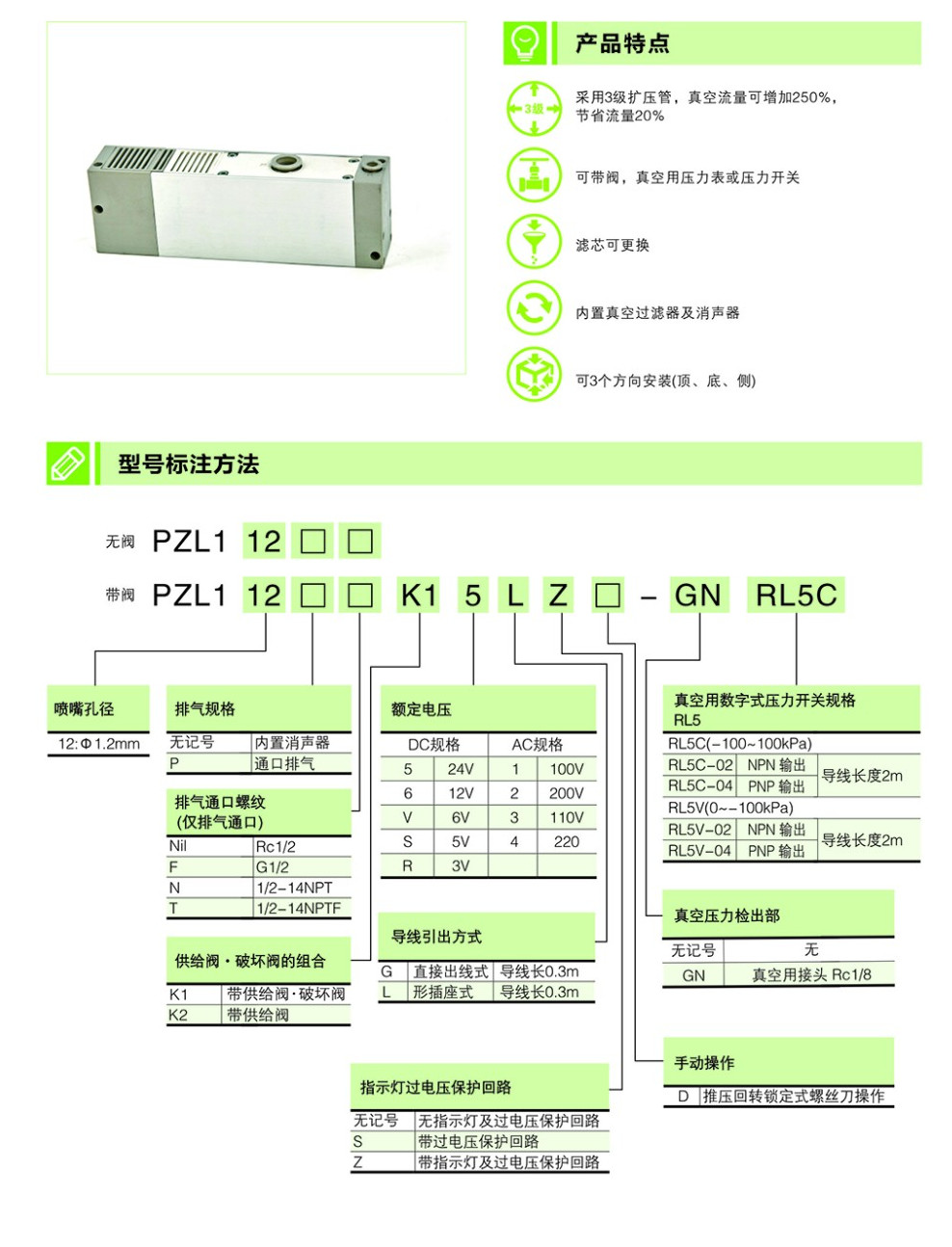 PZL112,PZL112-GN,PZL112P,PZL112P-GN,PZL112真空發(fā)生器