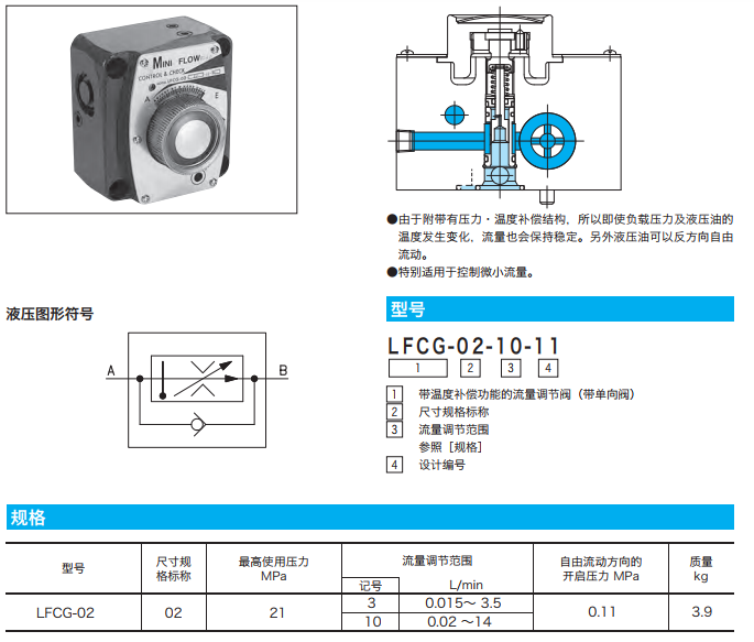 LFCG-02-3-11,LFCG-02-10-11,LFCG帶溫度補(bǔ)償功能的流量調(diào)節(jié)閥(帶單向閥)