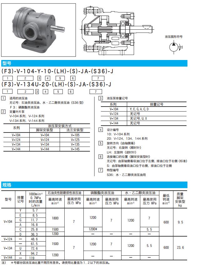 V-104-Y-10,V-104-E-10,V-104-G-10,V-104-A-10,V-104-C-10,V-104,124,134,144系列定量葉片泵
