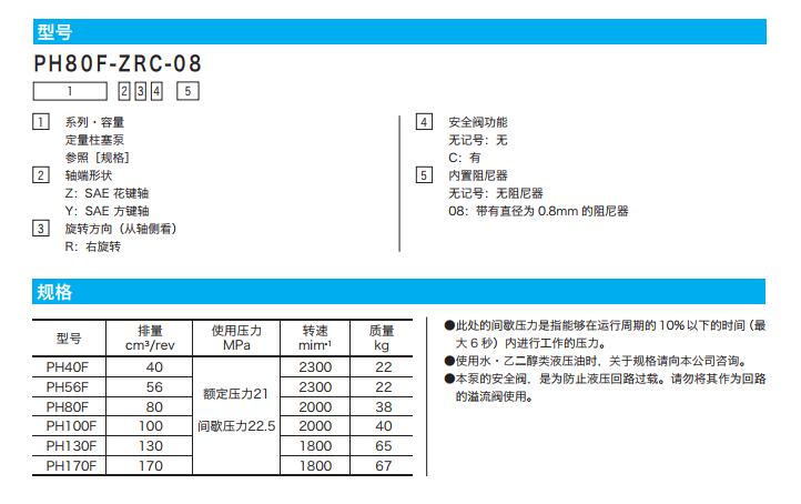 PH40F-ZR,PH40F-ZR-08,PH40F-ZRC,PH40F-ZRC-08,PH56F-ZR,PH56F-ZR-08,PH**F系列低噪音定量柱塞泵