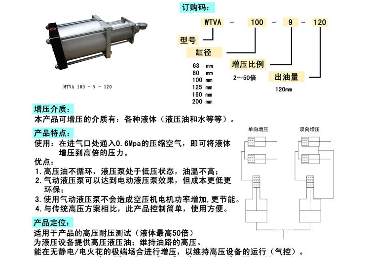 WTVA80-06-120,WTVA80-10-73,WTVA80-16-47,WTVA100-06-188,WTVA100-09-120,氣動(dòng)高倍增壓閥