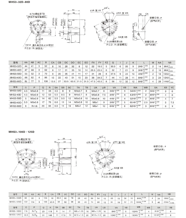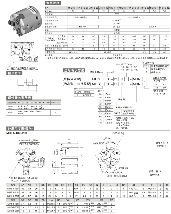 氣爪氣缸 MHS3-16D,MHS3-20D,MHS3-25D,MHS3-32D,MHS3-40D,MHS3-50D,MHS3-63D,MHS3-80D, MHS3-100D,MHS3-125D