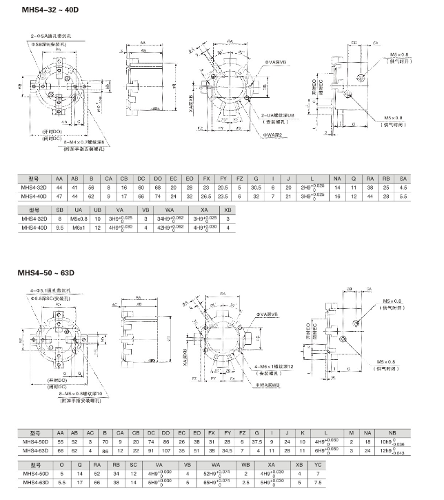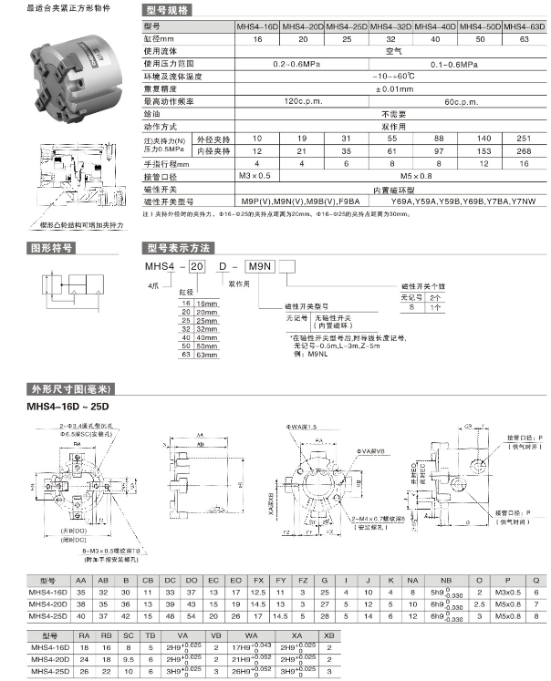 MHS4-16D,MHS4-20D,MHS4-25D,MHS4-32D,MHS4-40D,MHS4-50D,MHS4-63D