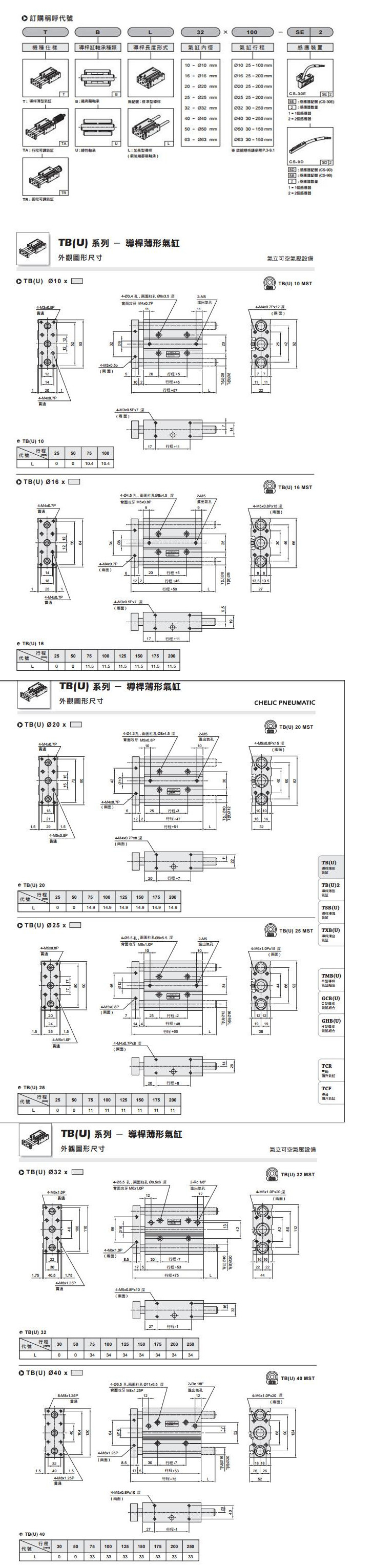 氣立可型三桿氣缸 TB12*25,TB12*30,TB12*50,TB12*75,TB12*100,TB12*125,TB12*150,TB16*25,TB16*30,TB16*50, TB16*75,TB16*100,TB16*125,TB16*150,TB20*25,TB20*30,TB20*50,TB20*75,TB20*100,TB20*125