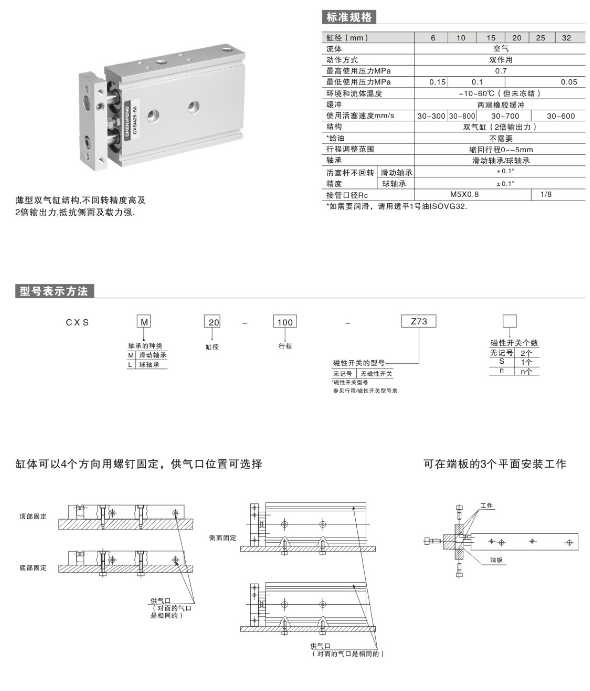 雙桿氣缸 CXSL6-10,CXSL6-15,CXSL6-20,CXSL6-25,CXSL6-30,CXSL6-35,CXSL6-40,CXSL6-45,CXSL6-50, CXSL10-10,CXSL10-15,CXSL10-20,CXSL10-25,CXSL10-30,CXSL10-35,CXSL10-40,CXSL10-45