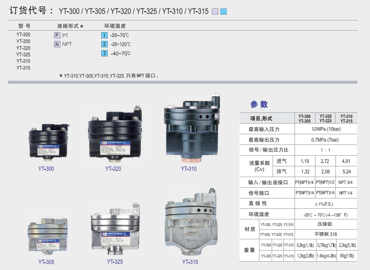 YT-300P1,YT-300P2,YT-300P3,YT-300N1,YT-300N2,YT-300N3,氣動(dòng)放大器