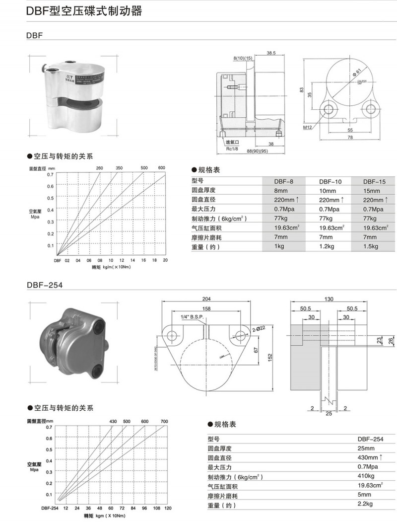 空壓蝶式制動器DBF-8,DBF-10,DBF-15,DBF-254