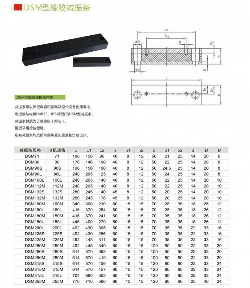 橡膠減振條 DSM71,DSM80,DSM90S,DSM90L,DSM100L,DSM112M,DSM132S,DSM132M