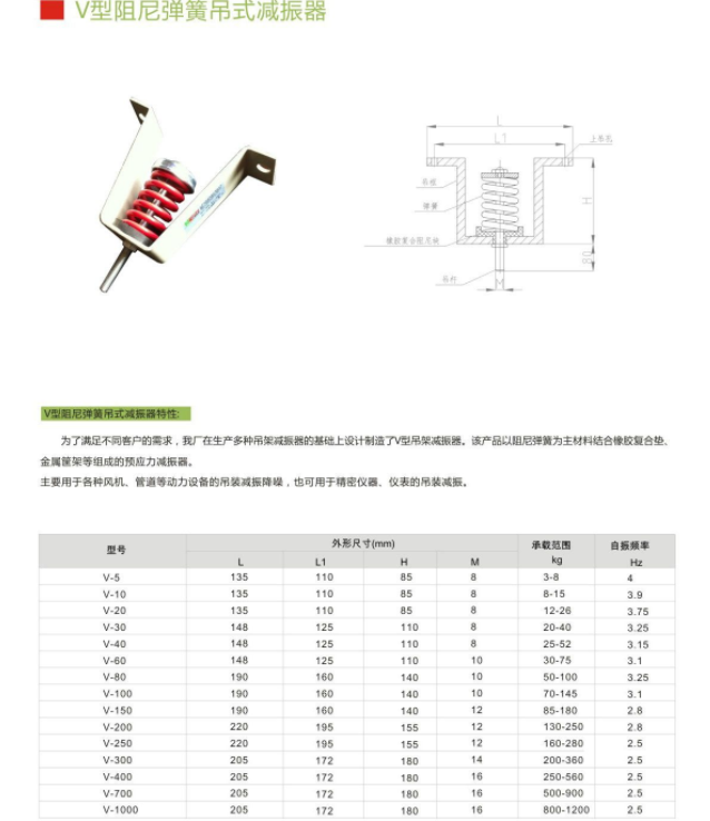 阻尼彈簧吊式減振器 V-5,V-10,V-20,V-30,V-40,V-60,V-80,V-100,V-150,V-200,V-250,V-300,V-400,V-700,V-1000
